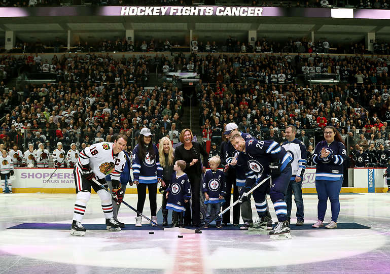The evening started with an emotional presentation by the Winnipeg Jets team to cancer survivors before the puck drop, leaving nary a dry eye in the house or at home watching on the LEDs. The Jets showed why they are the class organization of the team with a nicely done presentation, culminating with a $210,000 donation to cancer prevention programs in Winnipeg.